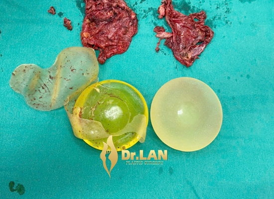 Hình ảnh túi độn ngực và bao xơ quanh túi ngực đã được TS.BS. Hoàng Lan tháo bỏ.
