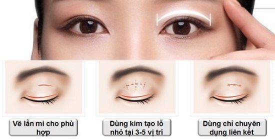 Tạo nếp mí bằng chỉ thẩm mỹ, hồi phục nhanh.